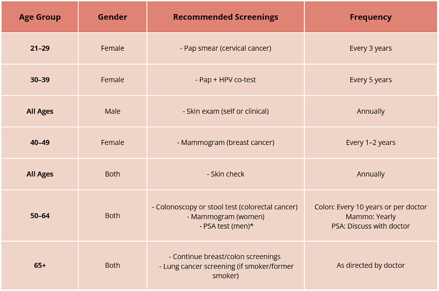 - Opportunity to discuss cancer risks and screening schedules
